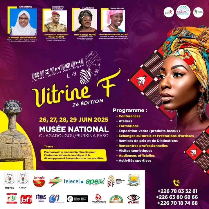 Le Musée National du Burkina Faso accueille la deuxième édition de vitrine F du 26 au 29 juin 2025 au sein du musée. Un événement aux couleurs internationales avec la participation de 7 pays ( Mali, Haïti, Canada, Cameroun, Gabon, Côte d’Ivoire, France.).